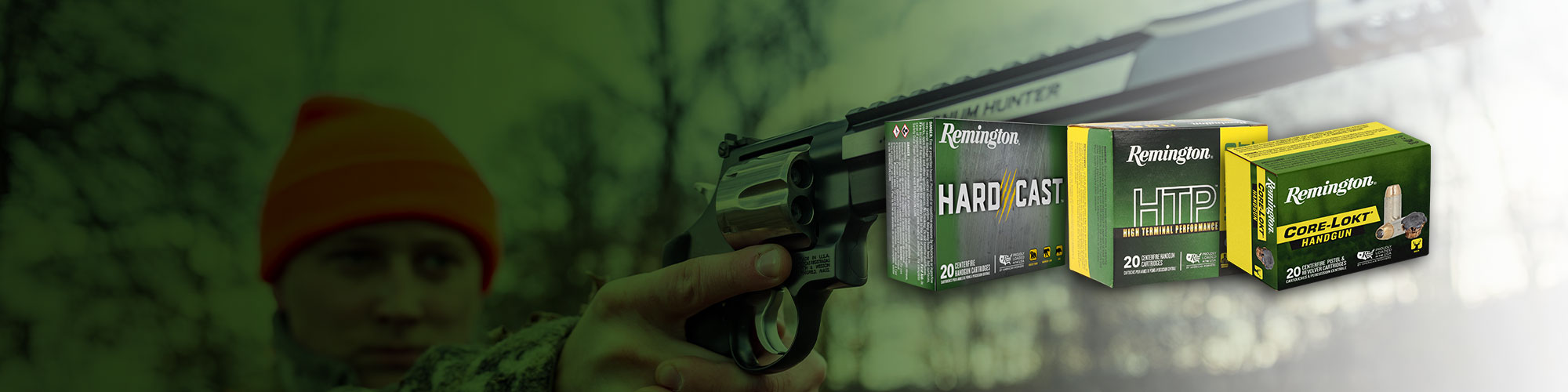 Buy at least 2 boxes of select* Remington® Handgun hunting ammunition and receive a rebate of 20% of the purchase price.
